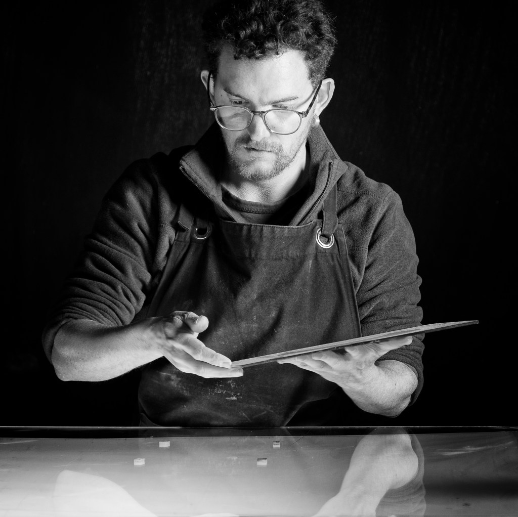 Formé à l’histoire de l’art à l’université de Nantes puis au vitrail traditionnel chez Claire Babet à Chartres je trouve réellement ma voie grâce à une formation complémentaire en peinture sur verre et création contemporaine à Oliviers de Serres, Paris.